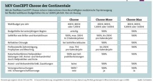 Dennoch scheuen sich viele Maklerinnen und Makler offenbar noch, Firmenkunden auf die betriebliche Krankenversicherung anzusprechen. Besonders erstaunlich ist das, weil bKV-Produkte immer attraktiver werden: Leistungsstark, flexibel und durch digitale Services immer leichter zu betreuen – bestes Beispiel dafür ist das bKV-Angebot ConCEPT der Continentale und hier besonders die Tariflinie ConCEPT Choose mit den Varianten Choose, Choose More und Choose Max, mit denen Firmenkunden das Passende für ihre Belegschaft auswählen können.