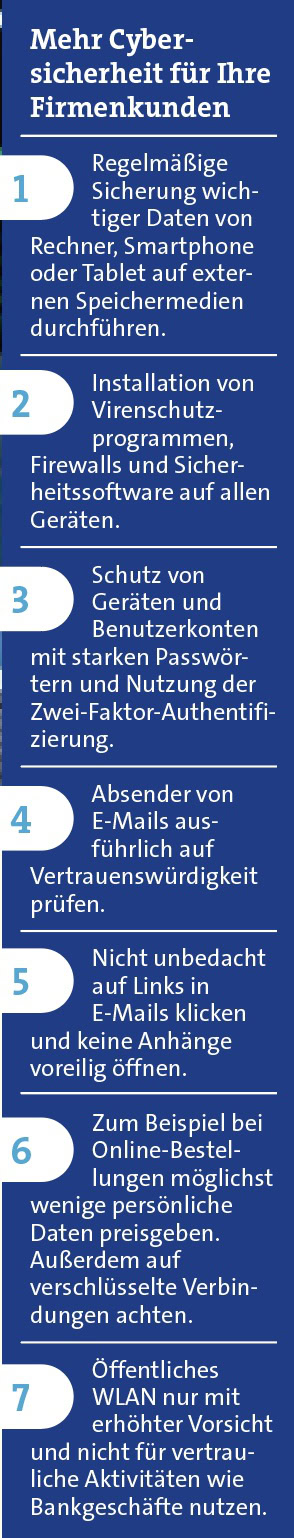 Es passiert meist schnell und unerwartet. Ein Mitarbeiter klickt auf eine täuschend echte Mahnung per E-Mail, die nicht gleich zugeordnet werden kann. Und schon haben Kriminelle Zugang zu Kundeninformationen oder Geschäftsdokumenten auf dem Server und gefährden die digitalen Betriebsabläufe des Unternehmens. Cyberkriminelle werden immer einfallsreicher, um an Firmendaten zu gelangen. Und es werden immer mehr.