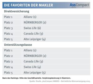 Die Allianz ist weiterhin Spitzenreiter, wenn es darum geht, mit dem Vermittler in der betrieblichen Altersversorgung (bAV) am liebsten zusammenarbeiten. Das hat das Fachmagazin Asscompact für den „Award – Betriebliche Altersversorgung 2025“ herausgefunden.