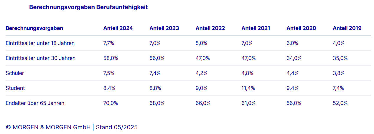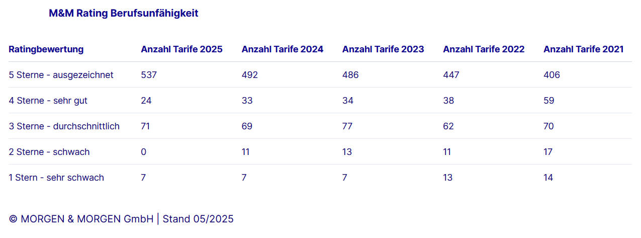 Ergebnisse des Berufsunfähigkeits-Ratings von Morgen & Morgen 2025 (Quelle: Morgen & Morgen)