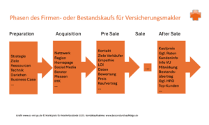 Zur Vorbereitung gehören auch solche Überlegungen, wer die Bestandsübernahme im Team des Käufers übernimmt, wie man die zeitweiligen Umsatzstagnation in der Erwerberfirma durch die zusätzlichen Aufgaben der Übernahme verkraftet oder wie die Weiterbeschäftigung von Angestellten der gekauften Firma kostenseitig abgebildet werden kann. Allein die Unterstützung des verkaufenden Maklers mit den Kundenanschreiben über das Code-Off-Conduct-Modell bei einem Bestandskauf ist eine Herausforderung für sich.
