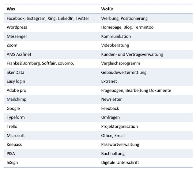 Da wir immer gefragt werden, welche digitalen Tools wir eigentlich verwenden, stellen wir sie in der folgenden Tabelle kurz vor.