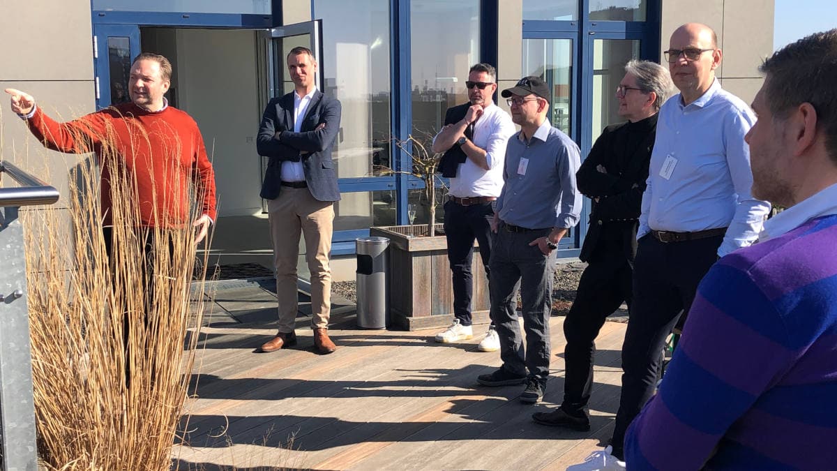 Auftakt zur Hop-On-Hop-Off Tour durch Berlin von und mit Pfefferminzia: Im Bild sind Pfefferminzia-Mitgesellschafter Jan Roß (rechts) und Geschäftsführer Matthias Heß im Hintergrund