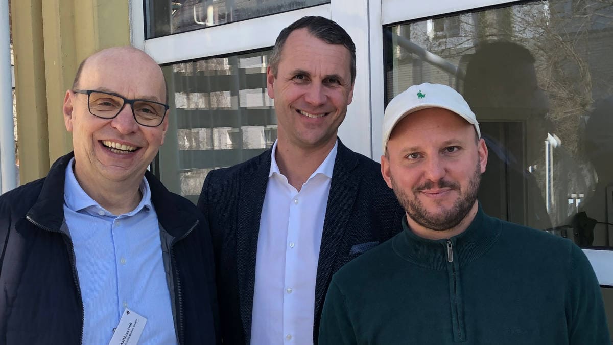 Muffintech-Chef und -Gründer Simon Moser (rechts) mit Matthias Heß (links) und Jan Roß von Pfefferminzia (Foto: Pfefferminzia)