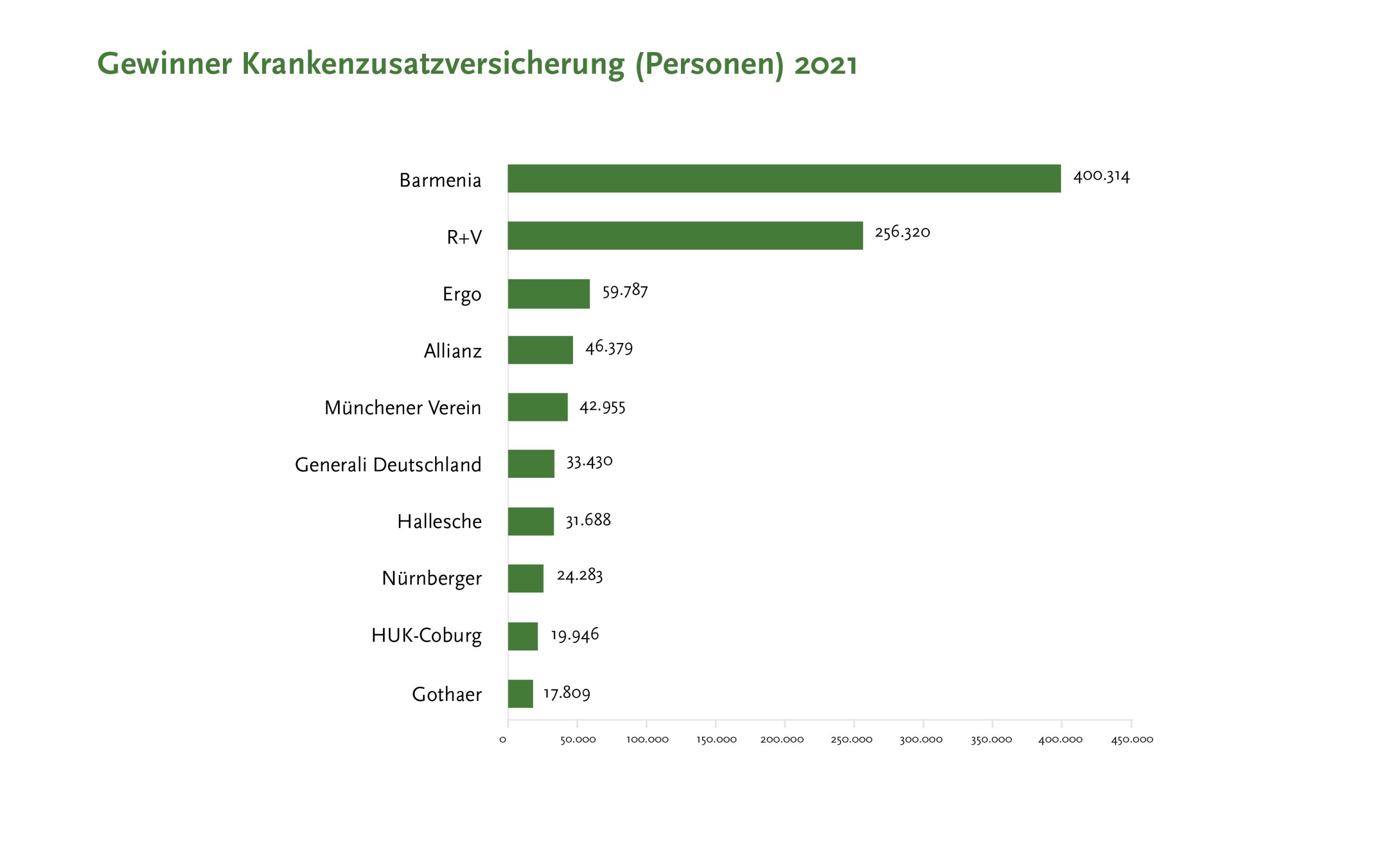 Große Gewinnerin auf dem Markt der Krankenzusatzversicherung ist im vergangenen Jahr die Barmenia. Sie gewann im Jahr 2021 auf diesem Gebiet über 400.000 Kunden neu hinzu. Die R+V folgt mit einigem Abstand auf dem zweiten Rang mit 256.000 neuen Kunden, und dann kommt die Ergo mit rund 60.000 Zugängen. Das ermittelte das Analysehaus Assekurata.