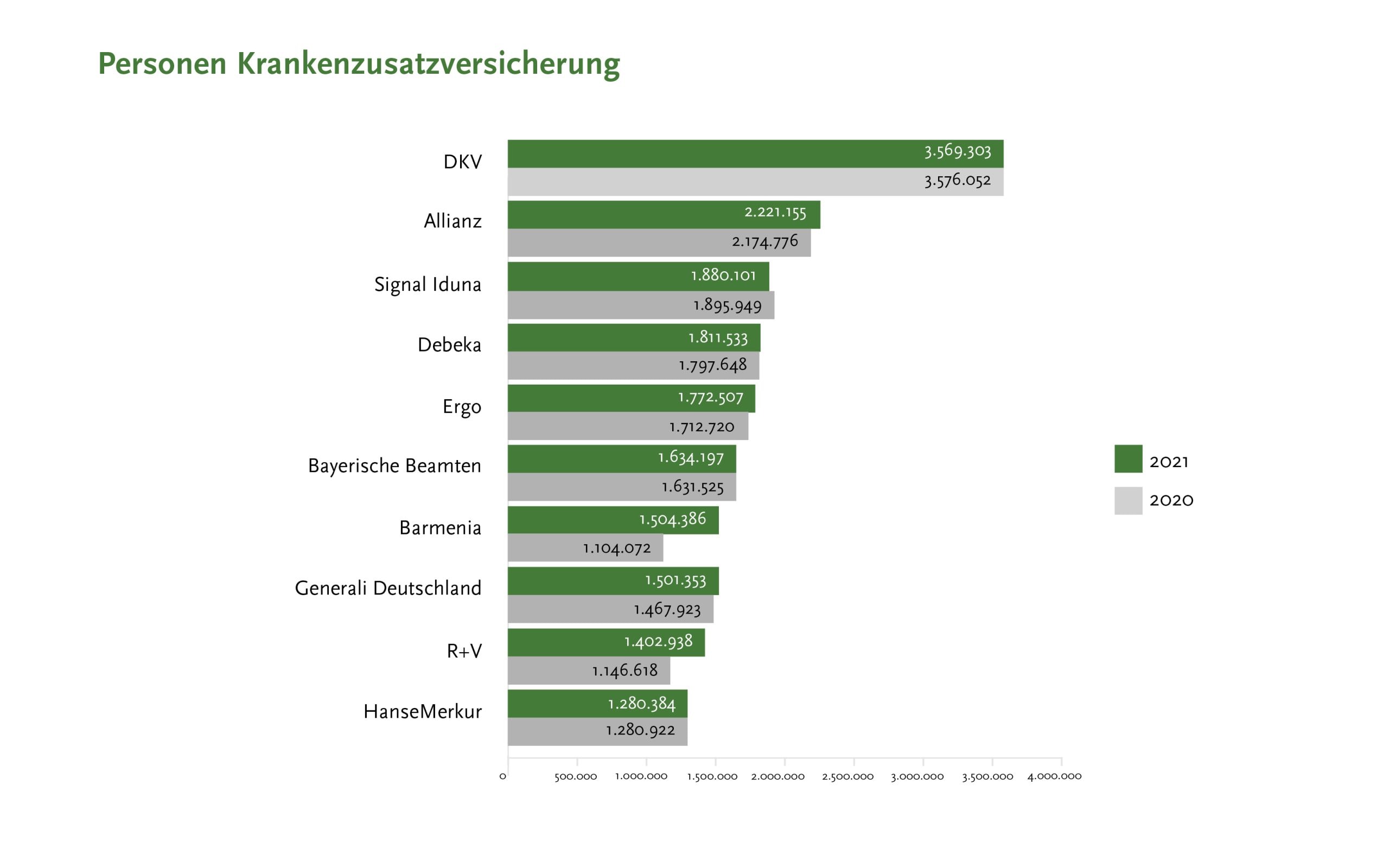 Versicherer mit den meisten Kunden bei Krankenzusatzversicherungen 2021 (Quelle: Assekurata)