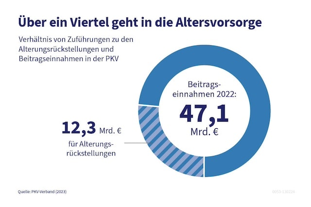 Zusätzlich zu den Zuführungen verzinst sich die Gesamtsumme der Rückstellungen am Kapitalmarkt. Insgesamt haben die privaten Versicherer zum Ende des Jahres 2022 rund 314 Milliarden Euro an Rücklagen gebildet, Ende 2023 waren es über 328 Milliarden Euro.