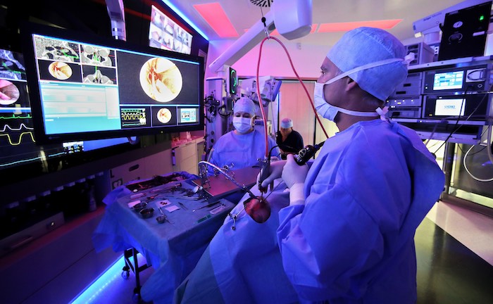 Mittels einer Software wird eine Nasennebenhöhlen-OP in einem Operationssaal in einer Klinik in Leipzig durchgeführt. Der medizinische Fortschritt wirkt sich auch auf die Kostenbelastung der privaten Krankenversicherer aus.