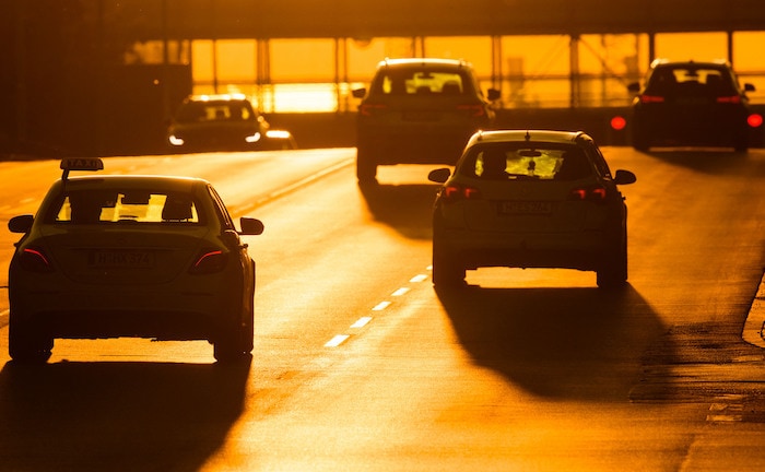 Autos sind auf Deutschlands Straßen unterwegs.