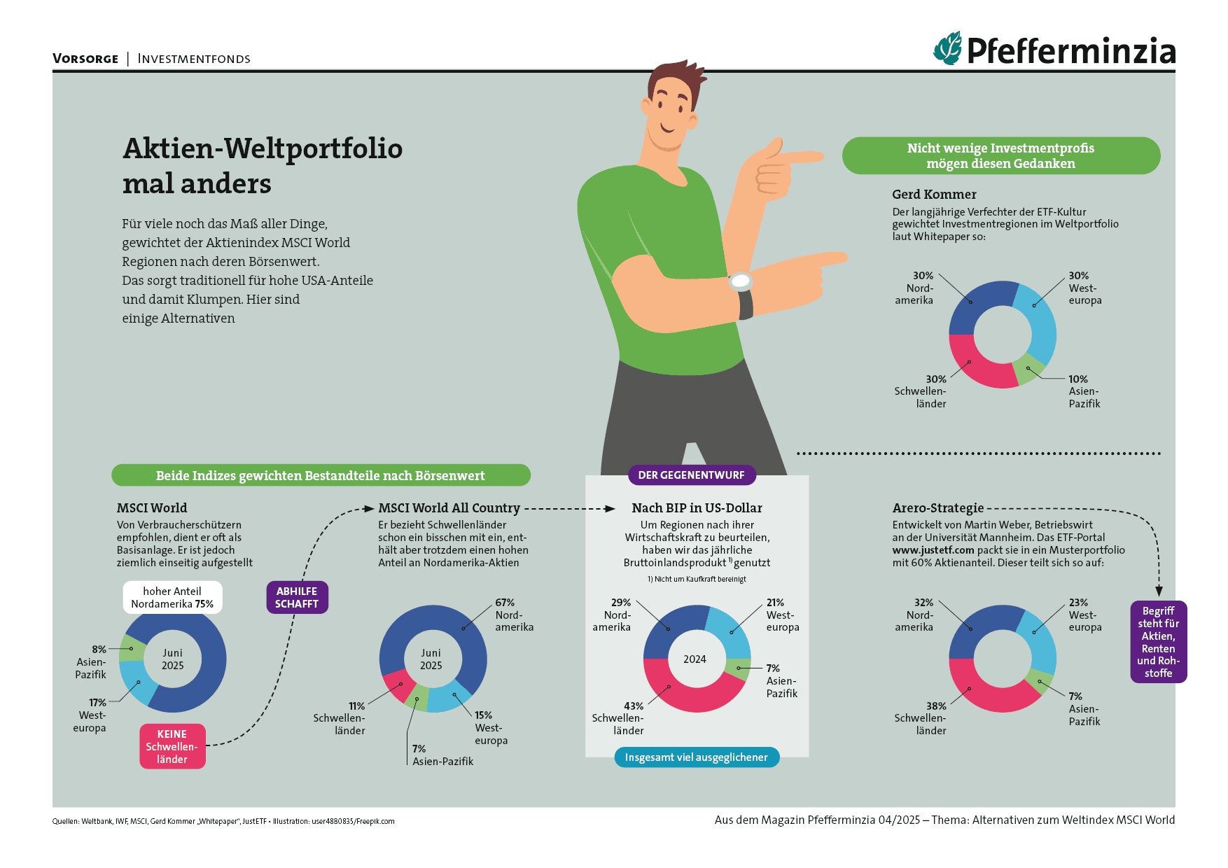 Für viele noch das Maß aller Dinge, gewichtet der Aktienindex MSCI World Regionen nach deren Börsenwert. Das sorgt traditionell für hohe USA-Anteile und damit Klumpen. Hier sind einige Alternativen.