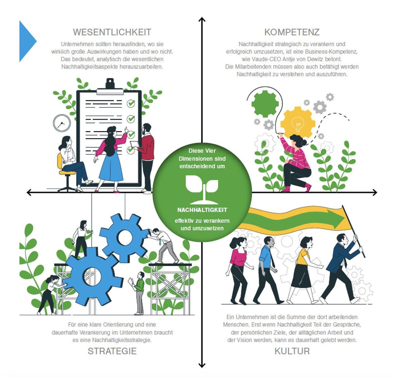 Nachhaltige Versicherer (und Banken bzw. Kapitalanlagegesellschaften) weisen vier Merkmale auf: