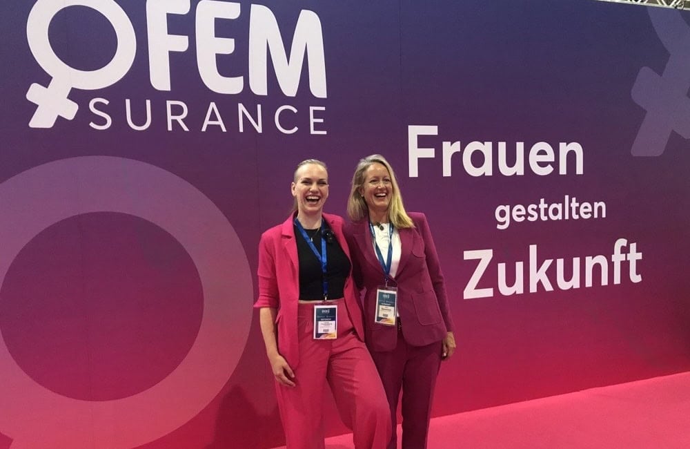 Gute Laune und geballte Frauen-Power beim Kongress Femsurance: Versicherungsmaklerin Cornelia Frankenberg (li.) und Leona Spauszus, die sich vor allem dem Thema KI im Vertrieb widmet.
