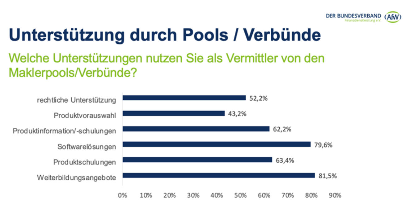 Welche Hilfen Vermittler von einem Maklerpool oder -verbund nutzen (Quelle: AfW)