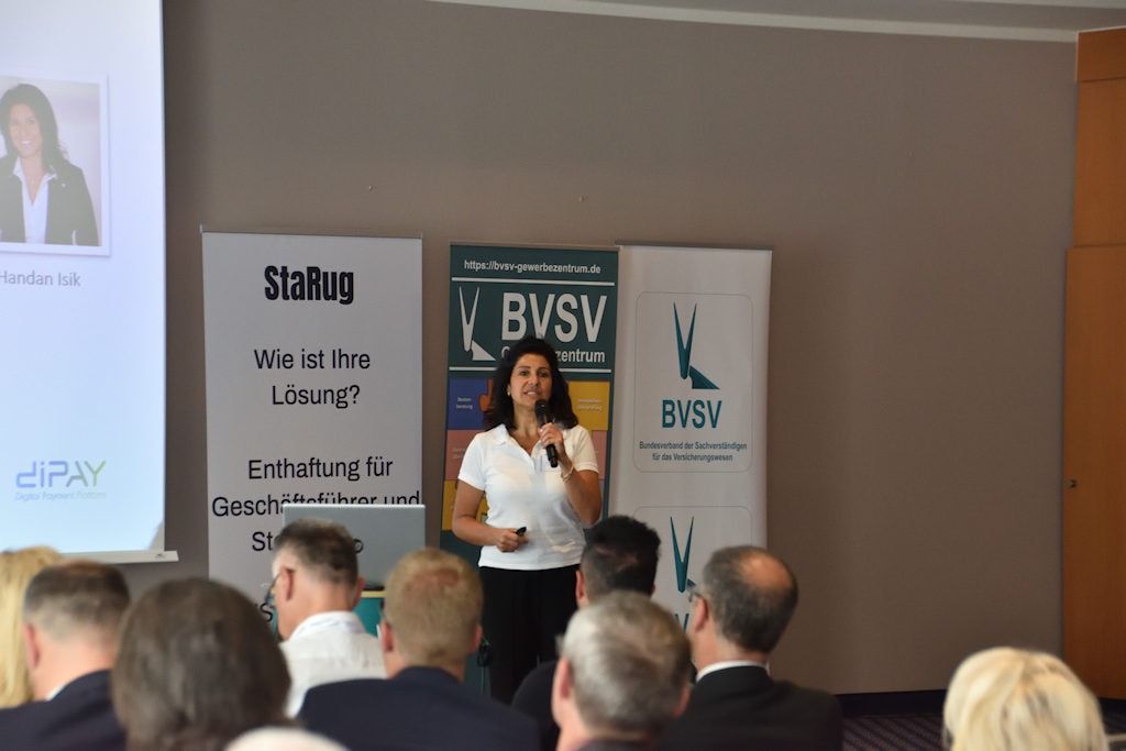 Geschäftsführerin Handan Isik erklärt das Prinzip des Branchendienstleisters Dipay (Foto: BVSV)