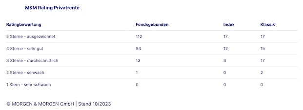 Mit dem neuen M&M Rating Privatrente legt das Analysehaus Morgen & Morgen nun auch ein Rating für fondsgebundene sowie für klassische Rententarife und Indexpolicen vor.
