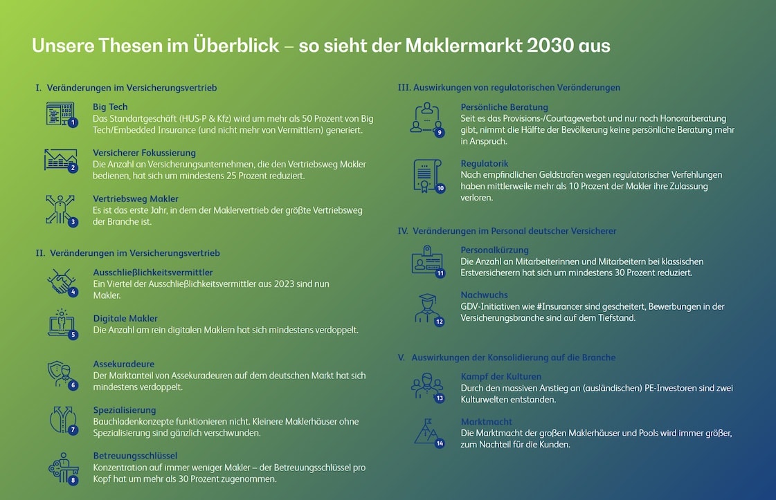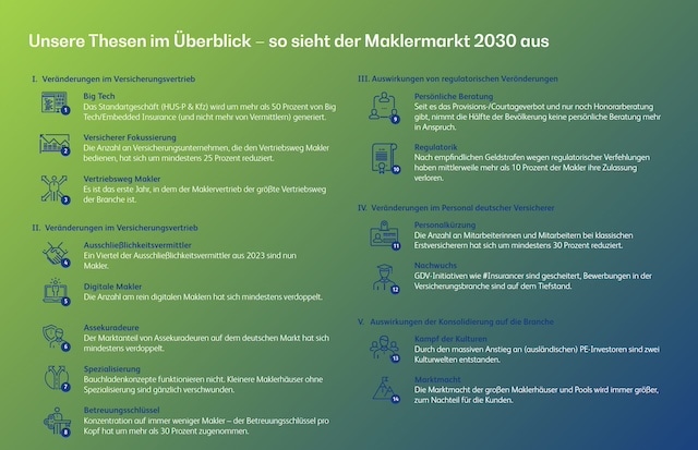 „Viele Maklerinnen und Makler stehen vor einschneidenden Entscheidungen und wir rechnen mit einer Zahl an Übernahmen, wie es sie bisher nicht gegeben hat“, so Gerhardus weiter. So beschäftigten sich 75 Prozent der Makler aktuell mit ihrer Nachfolge. „Viele fragen sich auch, wie sie das eigene Geschäft im hart umkämpften Markt so umstellen können, dass sie auch 2030 noch wettbewerbsfähig sind – nicht zuletzt die kleinen Makler“, erklärt der Versicherungsexperte.