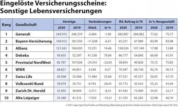Der Map-Report „Bilanzrating deutscher Lebensversicherer 2020“ kann kostenpflichtig bei Franke und Bornberg bestellt werden. Eine kostenlose Basisinformation ist unter diesem Link erreichbar.