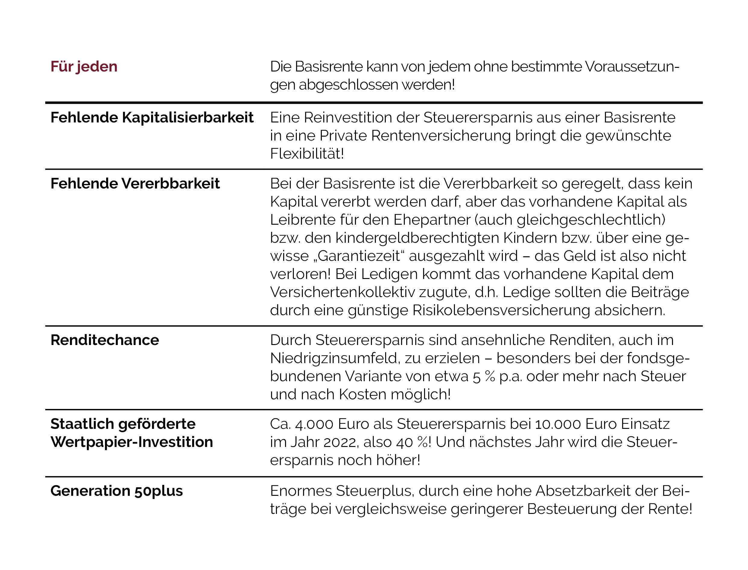 Natürlich muss niemand die Begeisterung des IVFP für die Rürup-Rente teilen. Allerdings liefert es noch ein paar Argumente, die seiner Meinung nach dafürsprechen. Wir wollen sie Ihnen nicht vorenthalten: