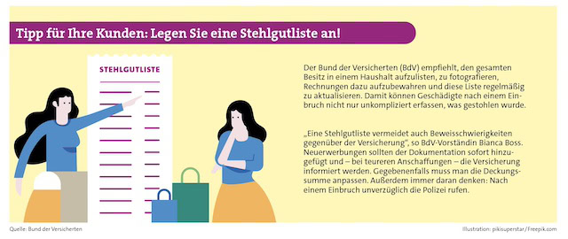 Als Makler oder Maklerin sollten Sie in der Beratung zu Hausratverträgen unbedingt auf diese Regelung hinweisen. „Es ist wichtig, für dieses Thema sensibel zu sein, um Haftungsrisiken auszuschließen“, sagt Sebastian Dittrich aus dem Fachbereich Privat Sach Haft bei der Allianz Versicherung. „Auch ist es wichtig, die Risikosituation richtig zu erfassen, indem man die Kundinnen und Kunden direkt fragt, was zu Hause an Wertsachen vorhanden ist, seien es Uhren, Schmuck, Kunstgegenstände oder Ähnliches.“