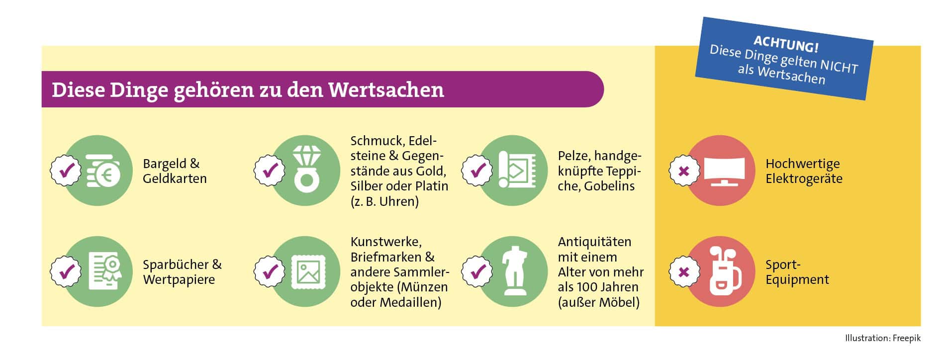 Sein Tipp: „Es kommt darauf an, vollumfänglich zu beraten, insbesondere hinsichtlich Sublimits und Präventionsmaßnahmen. Der Grundstein, um Missverständnisse und Haftungsrisiken auszuschließen, ist eine dezidierte und umfängliche Beratungsdokumentation.“ Aber vielleicht sollten Sie im Kundengespräch erst einmal erklären, welche Dinge versicherungstechnisch eigentlich als Wertsachen definiert sind. Das ist recht klar festgelegt.